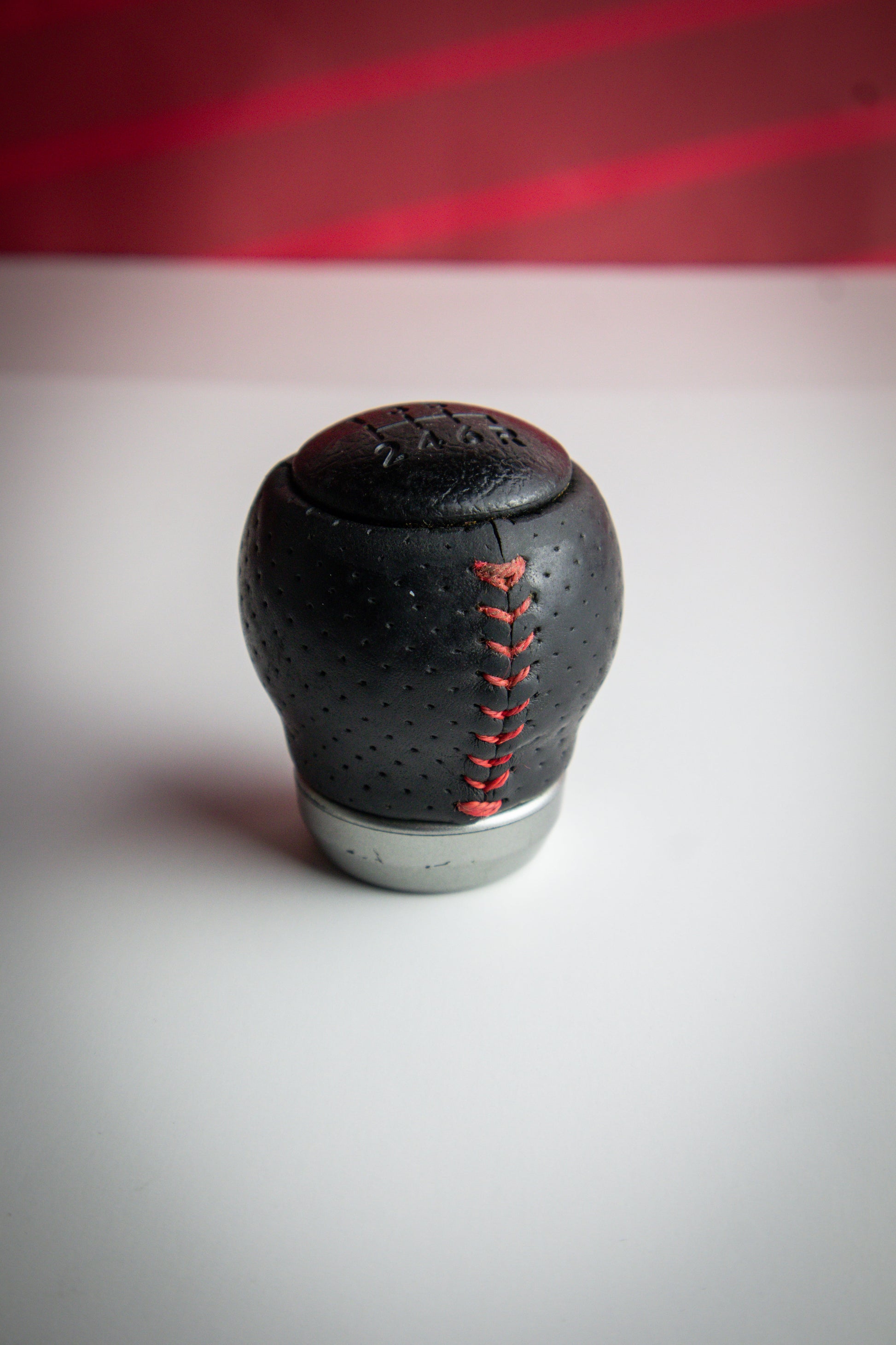Genuine Subaru STi leather OEM Shift knob for 6MT GDB models! There are a few imperfections throughout due to age and use. Please judge the condition of this shift knob before purchasing.